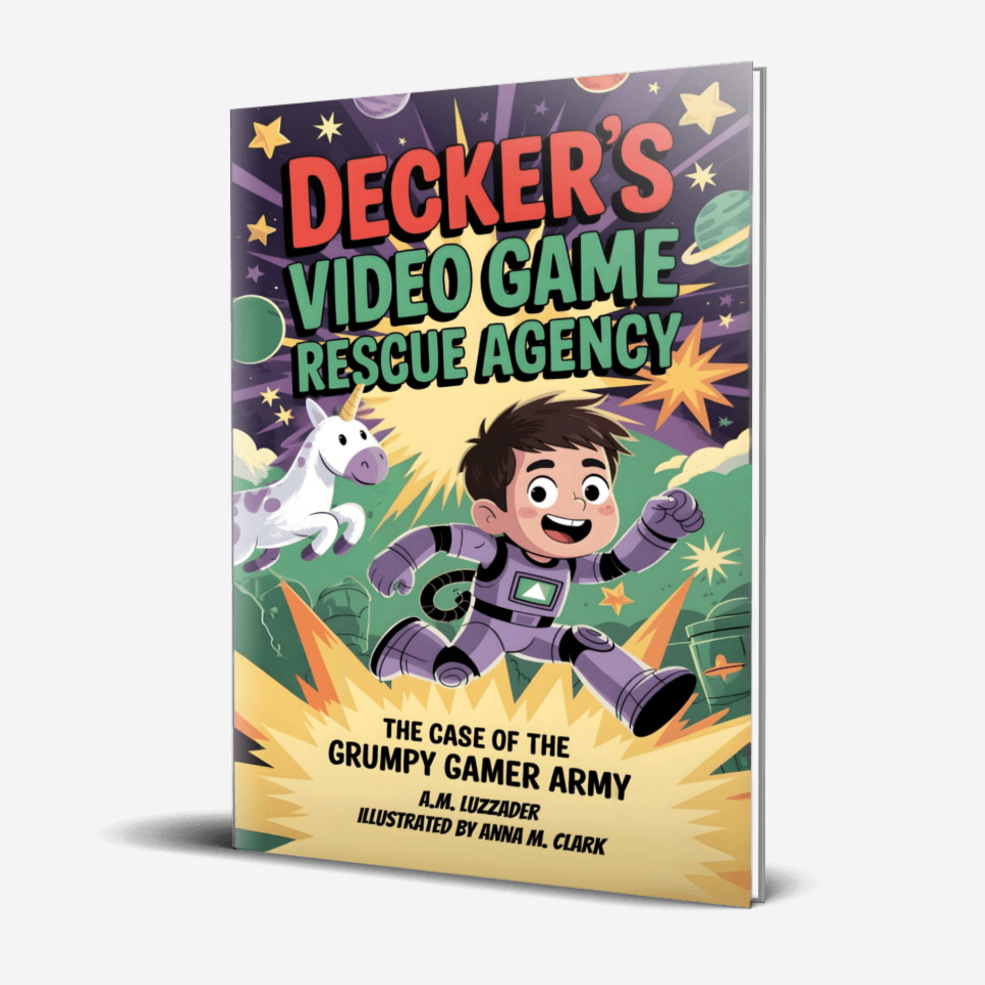 If you’re trapped in a video game, call Decker right away! If you love reading about video games, level up and hold onto your game controller! Decker’s Video Game Rescue Agency book series is full of hilarious adventures and epic video game action. Venture to the digital world with Decker and crawl through dungeons, fight ninjas, drive race cars, ride dinosaurs, battle dragons, run from zombies, and more!